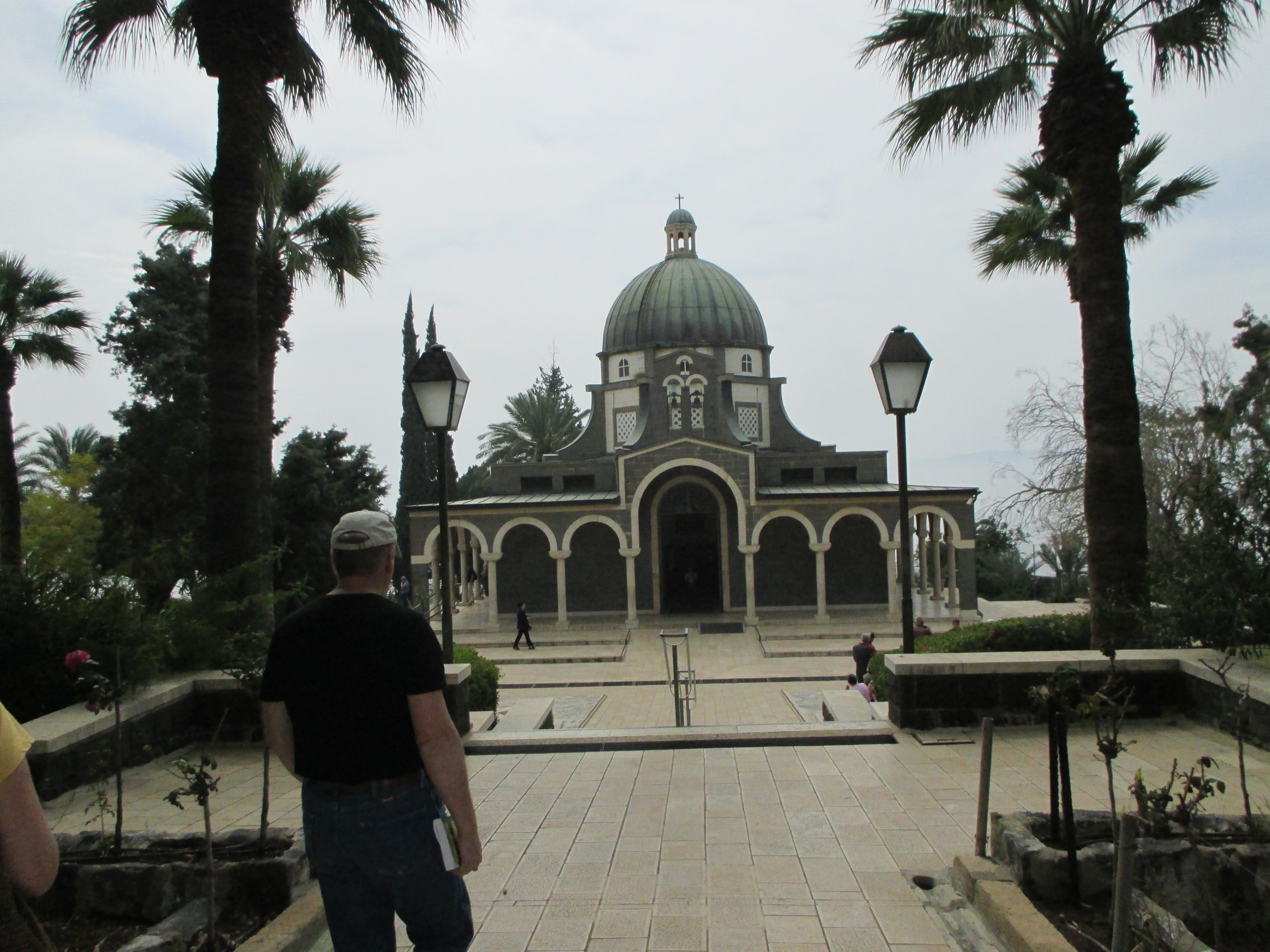 This is the Mount of Beatitudes as seen from the Lake of Galilee. It would have been a wonderful place for the crowds to sit and listen to Jesus. The next photo is a close up of the church located on the hill. It is a beautiful chapel.