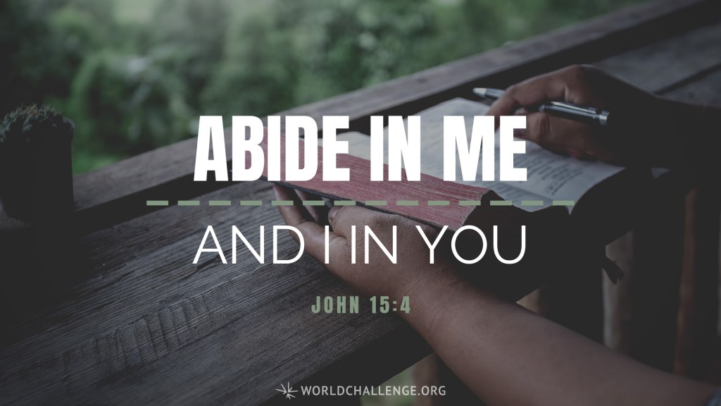 John 15:4 “Abide in me, and I in you. As the branch cannot bear fruit by itself, unless it abides in the vine, neither can you, unless you abide in me.”