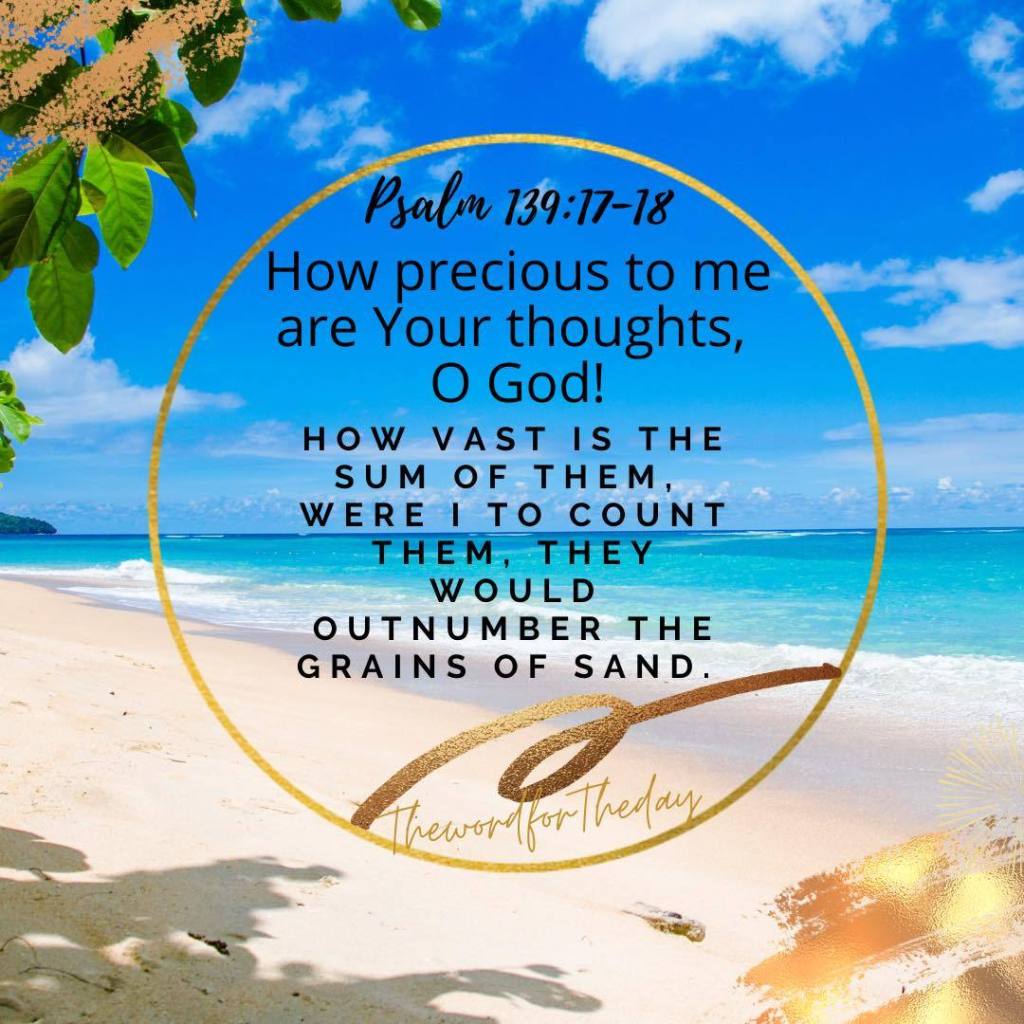 Our verses for today from Psalm 139: 17-18, reflect the psalmist love for God. He also grasps the immenseness of who God is, His vastness and power. Meditate on these 2 verses as you begin your day.