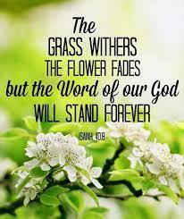 God’s Word is eternal. Isaiah 40:8 “The grass withers and the flowers fall, but the word of our God endures forever.” Recently, I was working with a group of teens to study Chapter 40 and several of us chose this verse as one of our favorites. It is so important to know that God’s Word is eternally true and does not change from generation to generation. The Bible is filled with affirmations of God’s Word being eternal. Here are a couple of my favorites; Psalm 119:89 Your word, Lord, is eternal; it stands firm in the heavens. Psalm 119: 160 “All your words are true; all your righteous laws are eternal.” John 6:68 “Simon Peter answered him, “Lord, to whom shall we go? You have the words of eternal life.” 2 Peter 3:5 “But they deliberately forget that long ago by God’s word the heavens came into being and the earth was formed out of water and by water.” God’s Words brought the world into existence as He spoke “Let there be…” in Genesis. John called Jesus the Word of God in John 1:1-3 “In the beginning was the Word, and the Word was with God, and the Word was God. 2 He was with God in the beginning. 3 Through him all things were made; without him nothing was made that has been made. and verse 14 “The Word became flesh and made his dwelling among us. We have seen his glory, the glory of the one and only Son, who came from the Father, full of grace and truth.” As in the case of God’s glory, the world has experienced God’s eternal Word from the beginning as He created all the heavens and the earth. We have experience the fullness of His Word in Jesus, the Word, the one who saves us and lives today after being raised from the dead. We have the assurance from God’s character that His Word is eternal and will endure for all generations. Praise God! That is an anchor for our soul and affirmation of our faith as we seek to live each day for Him. We do not need to worry that God will change His mind about loving and saving us. He is eternally true and keeps His promises.