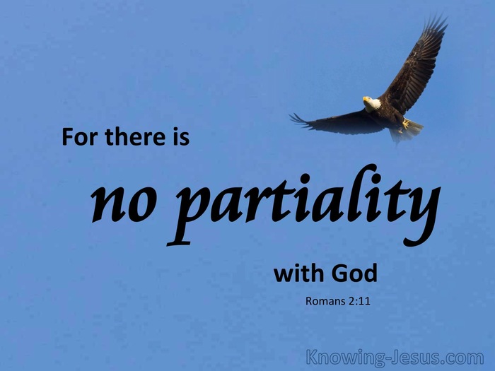 So what does the impartiality of God mean for you and me? God loves us each of us unconditionally and has a plan and purpose for each of us. We are individuals in God’s eyes and no one is better or more loved than another. We as earthly parents strive for this in our lives but we have a lot of baggage and get tied up in issues. God is not like that and is always just and fair. I can rely upon God’s justice and know He always stands for truth. We can depend upon God to be who He says He will be at all times, judging with justice and truth.