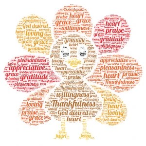After choosing my Word, thankfulness, I needed to generate 8-10 related words that come to mind when I think about thankfulness. I came up with: gratitude, heart, appreciative, grace, pleasant, willingness, praise, desired by God, loving.